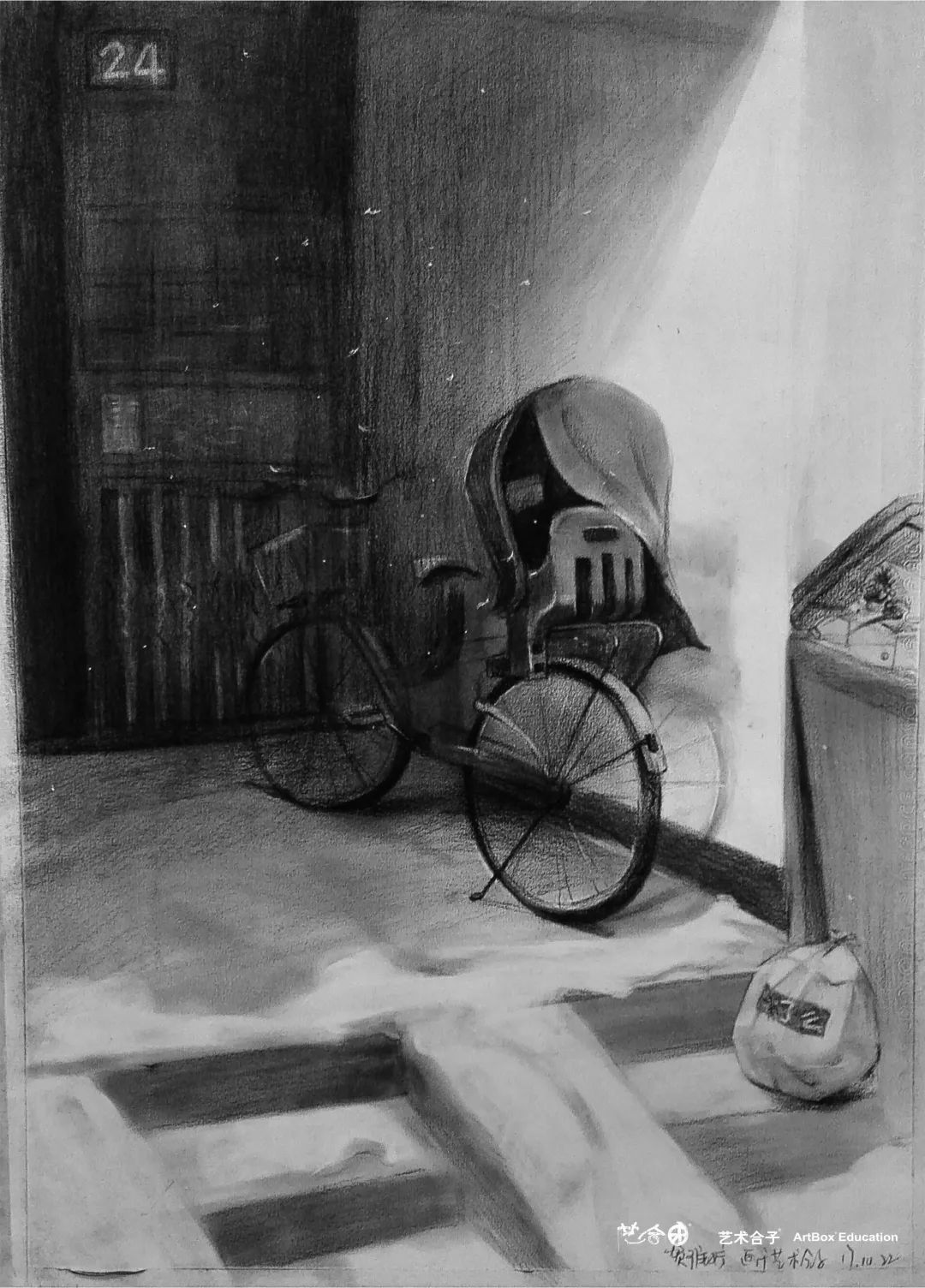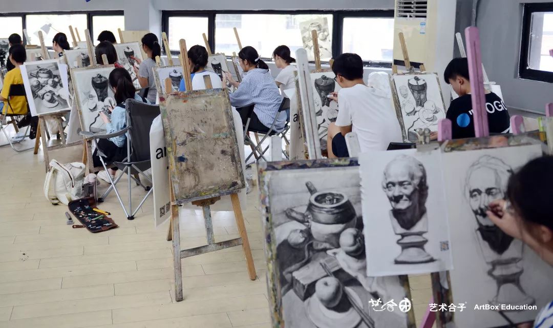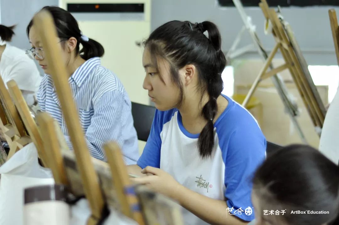 根据学生不同的学习进度,从几何石膏像开始,到素描静物,色彩静物,素描石膏头像,逐渐与高二学习进度接轨。